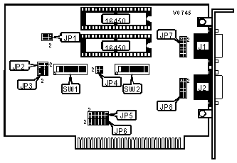 Note: A total of 255 memory base address settings are available. The switches are a binary representation of the decimal addresses. Switch 8 is the Least Significant Bit and switch 1 is the Most Significant Bit. The switches have the following decimal values: switch 8=1, 7=2, 6=4, 5=8, 4=16, 3=32, 2=64, 1=128. Turn off the switches and add the off switches to obtain the correct memory base address. (On=0, Off=1)