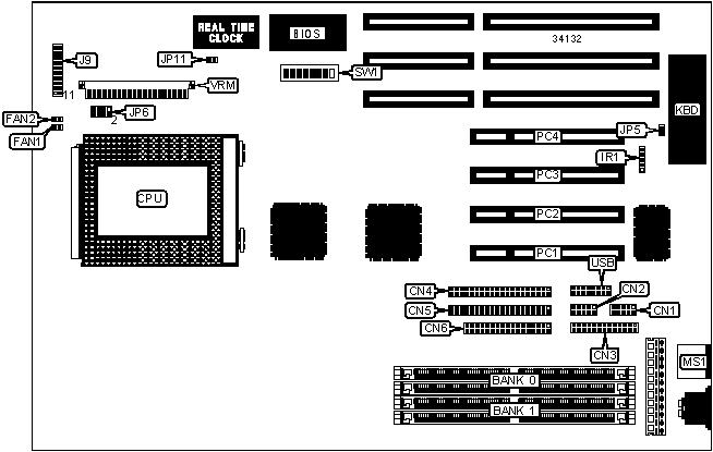 Note: Board accepts EDO memory. Board also accepts x 32 SIMMs