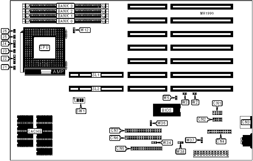 Note: The location of the factory configured jumpers is unidentified. | |||