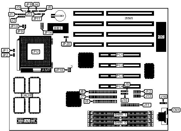 Note: Board accepts EDO memory. Banks are interchangeable.