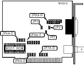 Note:If the card is on either end of a network segment, the onboard terminator can be used instead of using an external terminator.